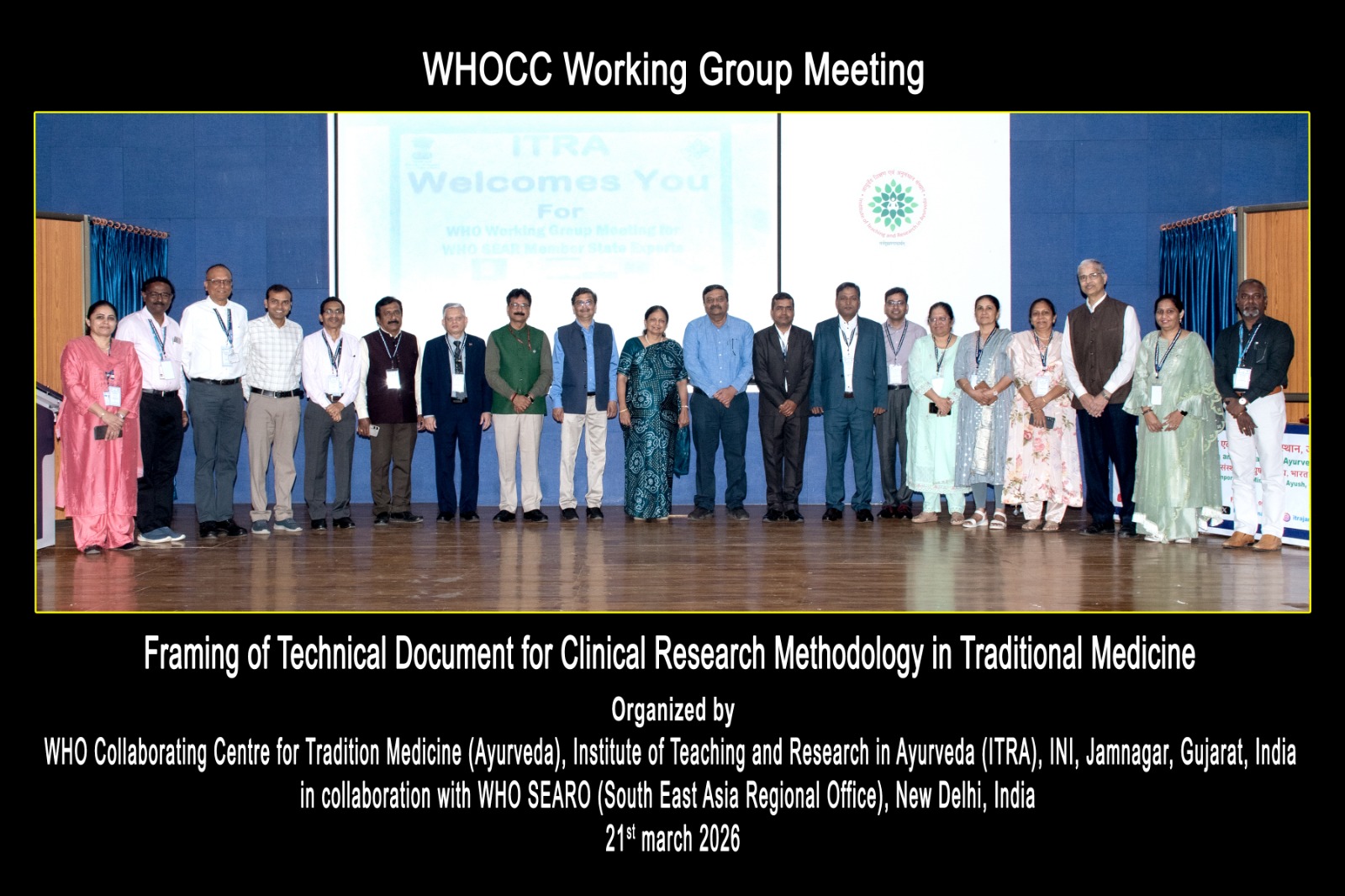 WHO Working Group Meeting was held on 20th March, 2026 by WHO-CC ITRA Jamnagar in collaboration with WHO-SEARO, New Delhi in hybrid mode at ITRA, Jamnagar, Gujarat. 34 esteemed experts—including experts from WHO-SEARO; delegates from member states of WHO South-East Asia Region viz. Bhutan, Nepal, Sri Lanka, Thailand; Director...